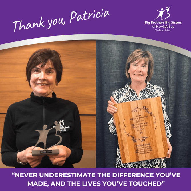 It was with mixed emotions that we farewelled Patricia in December. Patricia was an integral and invaluable member of the Big Brothers Big Sisters team, and was the spark that relaunched the Hawke's Bay branch in 2017. In her six years, she was Mentor Coordinator, Programme Manager and then Sponsorship Manager. We ended 2023 with 32 sponsored matches, all thanks to Patricia's dedication and commitment. We will miss her contributions and wish her the very best.