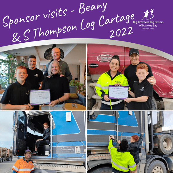 A number of our sponsored matches have enjoyed visits to their sponsor's work sites over the last couple of months. Read more below about the Napier Port, Tomoana Warehousing, S Thompson Log Cartage Ltd & Beany visits and the fun our mentees had.